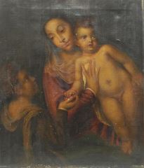 LOT 158 Oil on Canvas Attributed to Maria Waes After Titian, 27 x 23 1/4 , "Madonna & Child with... Estimate: $150 - $300 Auction Date: Tuesday, November 04 2025 at 4:00 PM