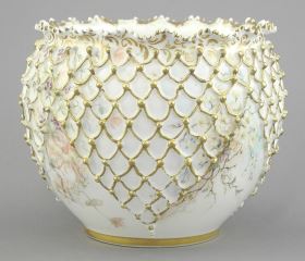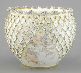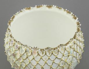 Knowles Taylor & Knowles "Lotus Ware" Porcelain Bowl, 4 1/8"h (2 crenellations missing).