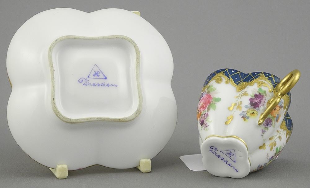 Dresden Porcelain Chocolate Cup & Saucer, 3 3/8"w.
