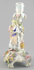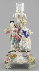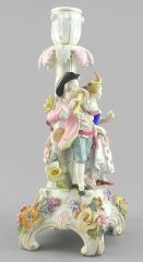 Dresden Porcelain Candle Holder with a Couple, 10".