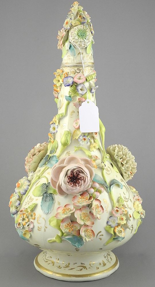 LOT 20 Three Piece Coalbrookdale Style Pottery Garniture, 11 1/4 & 15"h (losses noted). Estimate: $100 - $200 Sold For: $180 Auction Date: Tuesday, November 04 2025 at 4:00 PM