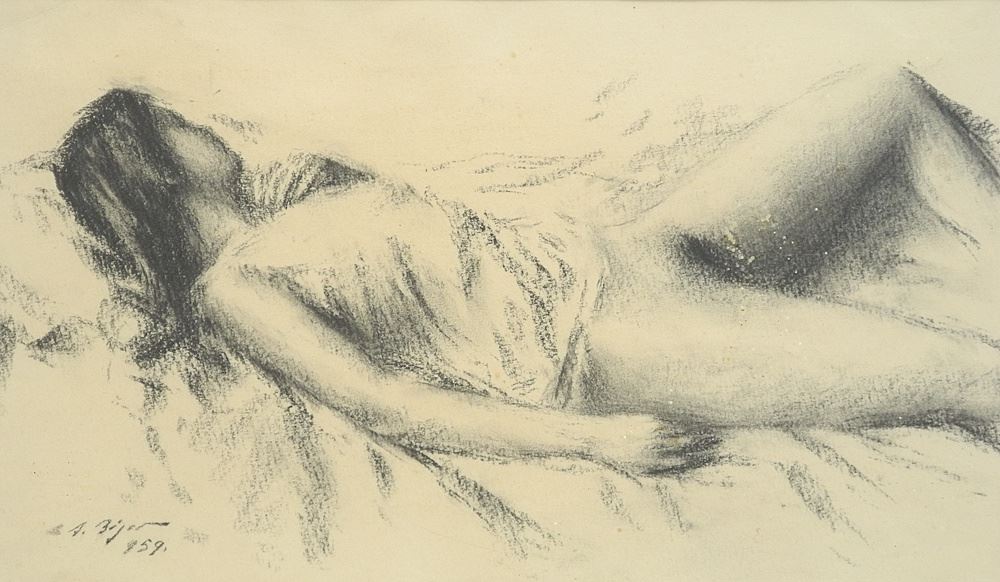LOT 50 Drawing signed A.Bij_____, 9 1/2 x 16", "Sleeping Woman". Estimate: $60 - $100 Sold For: $40 Auction Date: Tuesday, November 04 2025 at 4:00 PM