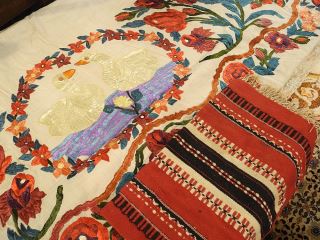 Three Textile Items: Tapestry (60 x 68")/Embroidery/Cushion Case.