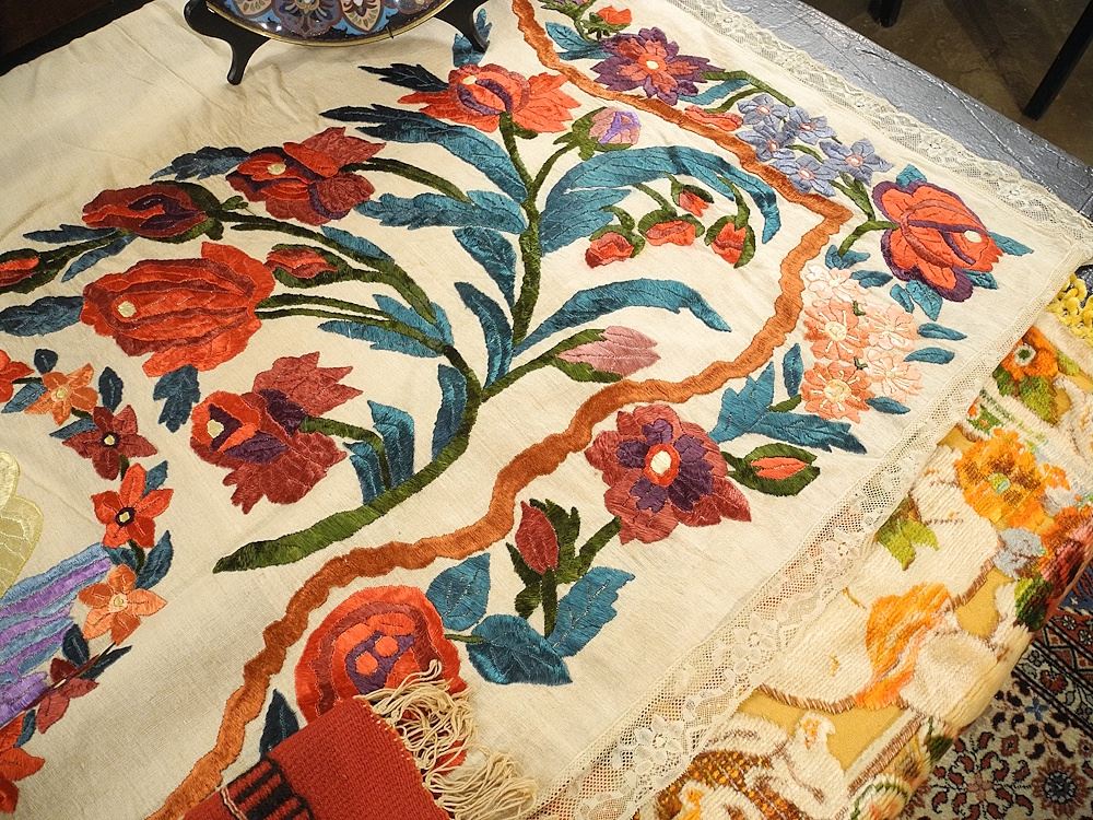 LOT 145 Three Textile Items: Tapestry (60 x 68")/Embroidery/Cushion Case. Estimate: $60 - $100 Sold For: $70 Auction Date: Tuesday, November 04 2025 at 4:00 PM