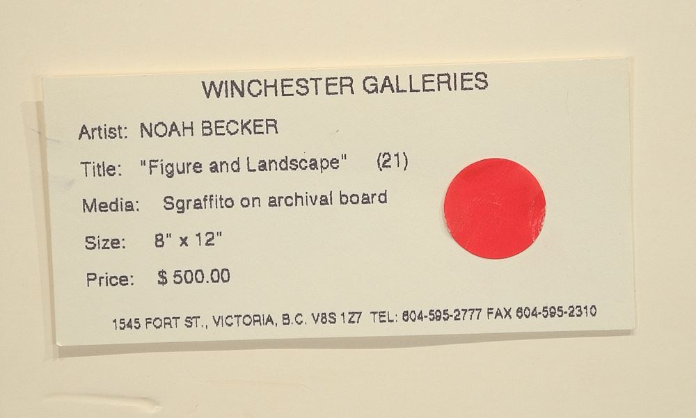 LOT 173 Sgraffito on Board signed Noah (Becker)'94, 12 x 8", "Figure and Landscape". Estimate: $60 - $100 Auction Date: Tuesday, April 21 2026 at 4:00 PM