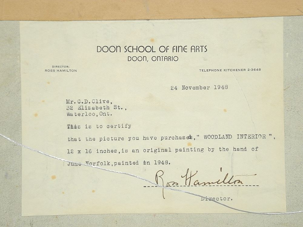 LOT 161 Oil on Board by June Norfolk, 12 x 16", "Woodland Interior", COA Verso. Estimate: $50 - $100 Auction Date: Tuesday, April 21 2026 at 4:00 PM