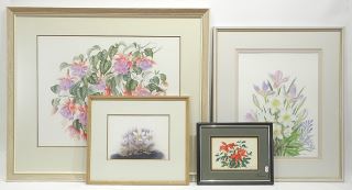 Collection of Watercolors & Card signed E. (Emily) Sartain, Largest 16 x 20 1/4", "Floral...".