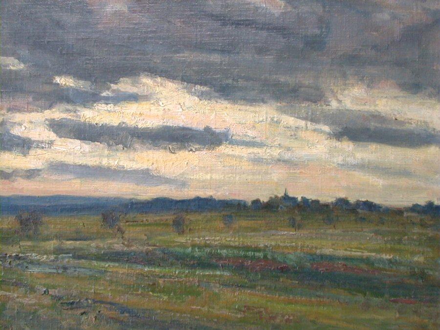 Oil painting on board signed F. Libal, 17" x 21 1/2","Evening at Novosedel".