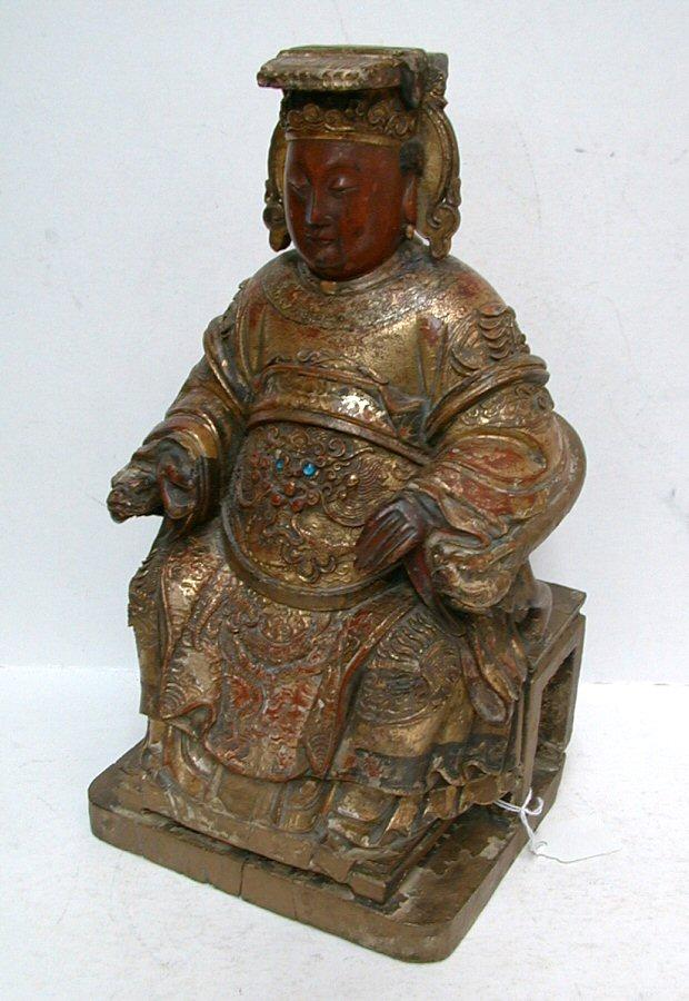 LOT 117 Oriental painted and gilt wood figure of a seated man, height 13 1/2 inches. Estimate: $200 - $300 Sold For: $350 Auction Date: Monday, April 19 2004 at 7:00 PM
