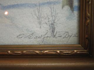 Watercolour signed E. Sawford-Dye, 10" x 6", "Road Through the Snow".
