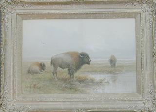 LOT 121 Watercolour signed Verner, 13 1/2" x 20", "Landscape with Buffalo". Estimate: $3,000 - $5,000 Sold For: $3,250 Auction Date: Monday, February 19 2001 at 7:00 PM