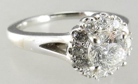 18k white gold diamond cluster ring, centre stone .55ct, SI-2, G colour.