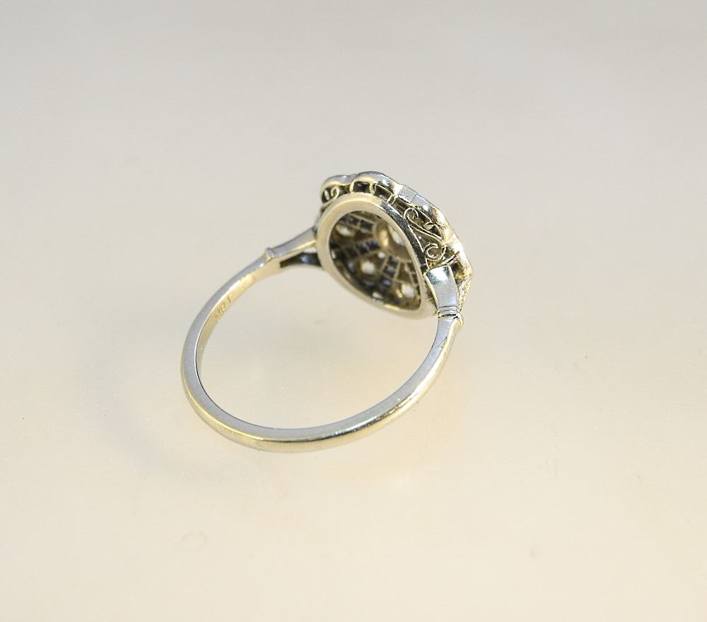 18K White Gold Vintage Sapphire & Diamond Ring.