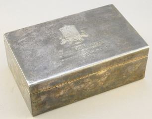 LOT 39 W.M.Carmichael Sterling silver box with BC inscription, 5 1/2" wide. Estimate: $100 - $200 Sold For: $170 Auction Date: Tuesday, March 02 2021 at 6:00 PM