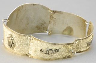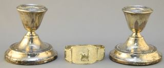 LOT 123 Pair of Silver Candlesticks (Masseler/ Braham/ 1914) and a Peruvian Bracelet, 2 7/8". Estimate: $60 - $100 Sold For: $40 Auction Date: Tuesday, May 11 2021 at 6:00 PM