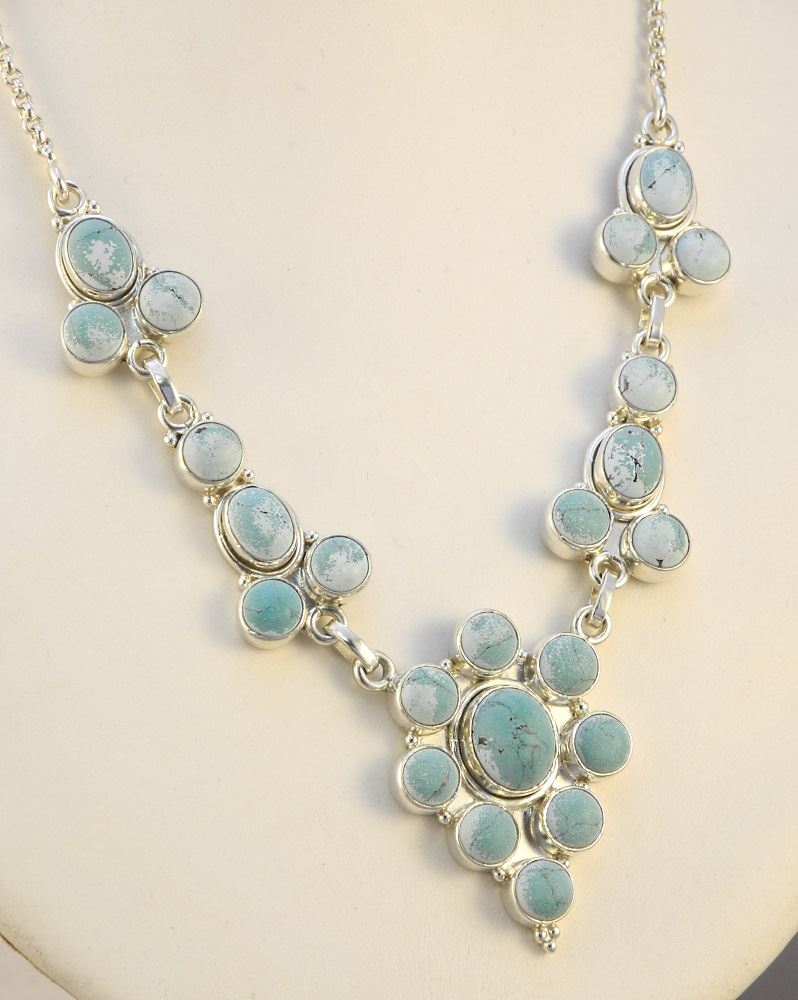 Sterling Silver Turquoise V Drop Necklace, 8 1/2" length.