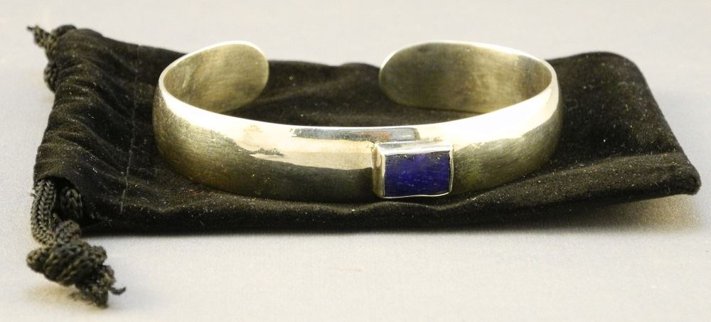 Sterling Silver Lapis Modernist Cuff Bracelet.