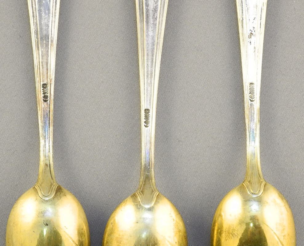 LOT 104 Continental 800 silver set of twelve coffee spoons with gilded bowls in case. Estimate: $100 - $200 Sold For: $90 Auction Date: Tuesday, May 11 2021 at 6:00 PM