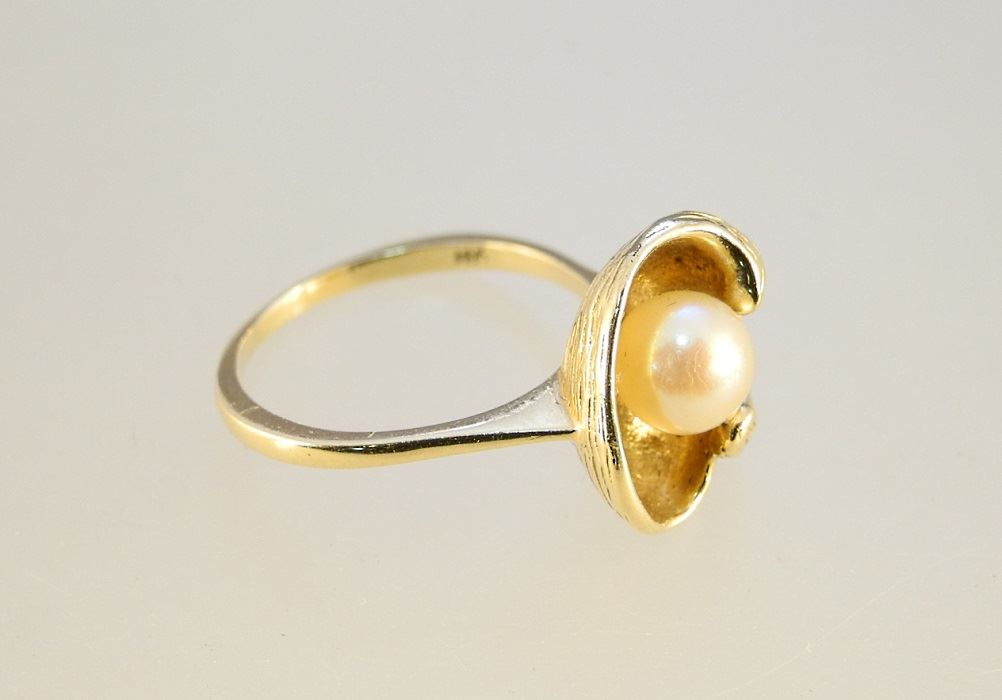 LOT 94 Birks 18K gold ring with a scrolling basket set pearl, 5.9g. Estimate: $200 - $300 Sold For: $220 Auction Date: Tuesday, May 11 2021 at 6:00 PM