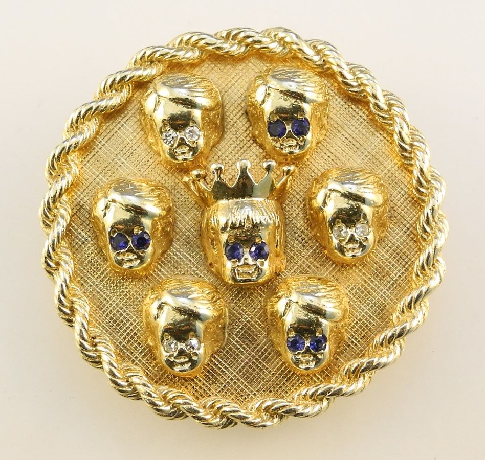 LOT 79 14K Yellow Gold Sapphire & Diamond Pendant / Brooch, "Seven Faces". Estimate: $1,000 - $1,400 Auction Date: Tuesday, May 11 2021 at 6:00 PM