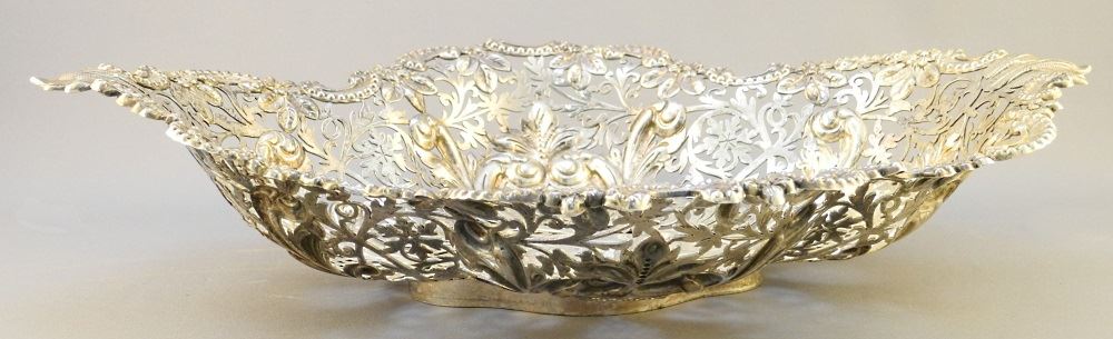 LOT 30 English Silver Embossed Lobed Dish, 15 1/4" wide, tear noted. Estimate: $200 - $300 Sold For: $220 Auction Date: Tuesday, July 13 2021 at 6:00 PM