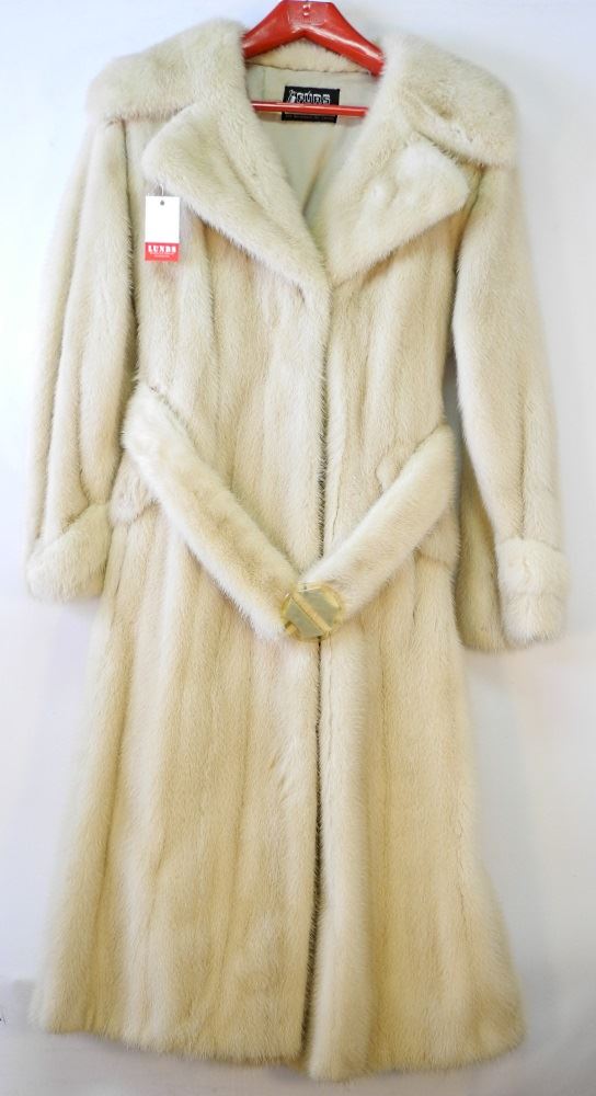 Full Length, Cream Coloured Belted Mink Coat By Karoway Furs.