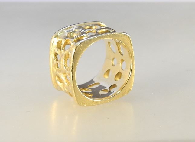 Modernist Unmarked Gold Soft Square Ring.