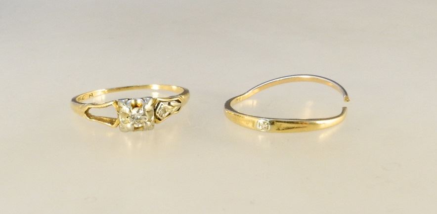 LOT 162 14-18K Gold & Diamond Wedding & Engagement Ring Set, 0.07ozt, worn. Estimate: $100 - $150 Auction Date: Tuesday, July 13 2021 at 6:00 PM