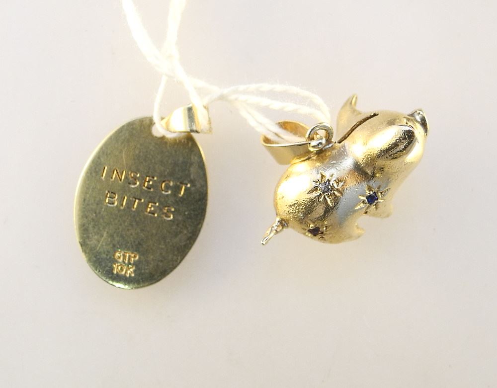 2 10K Gold Pendants: Pig & Medic Alert, 0.20ozt.