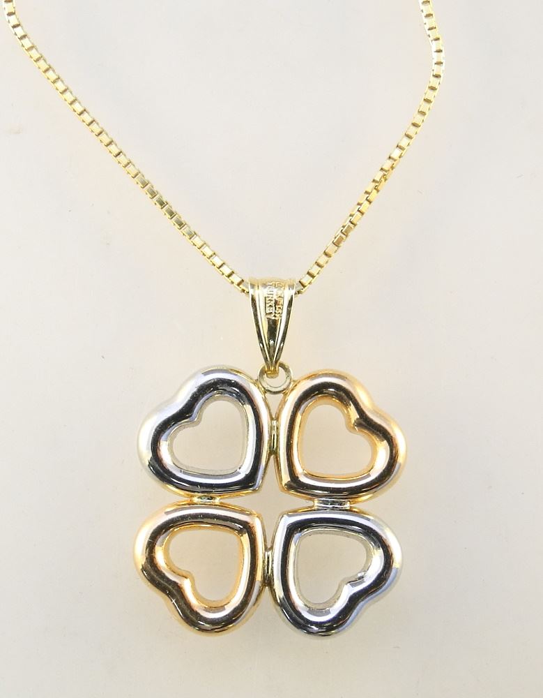 LOT 184 14K Gold Chain with a Tri Coloured Gold Heart Pendant, 0.16ozt. Estimate: $125 - $175 Sold For: $180 Auction Date: Tuesday, July 13 2021 at 6:00 PM