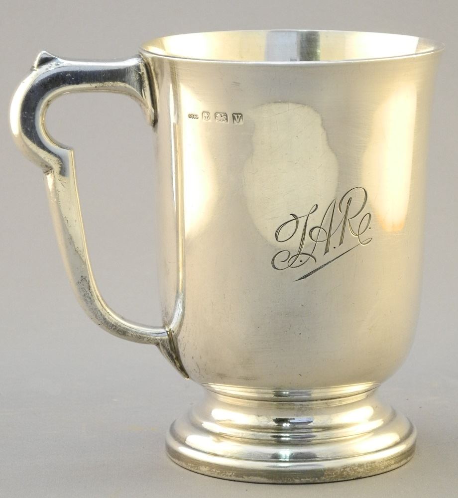 Silver Mug, Marked Birmingham - Monogrammed, 4 7/8" high.