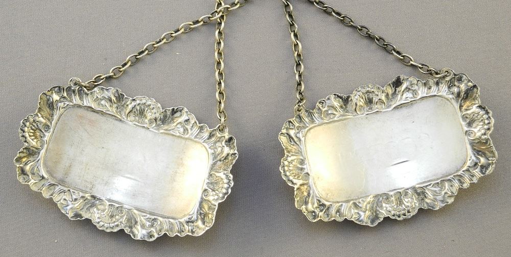 2 Hallmarked Silver Labels: Scotch & Brandy, 2 1/4" wide.