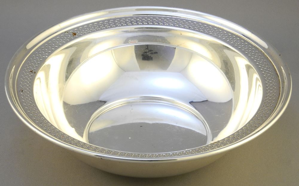 Lund Sterling Silver Bowl with Pierced Rim, 248 grams, 2 1/2 x 8 3/4" Diameter