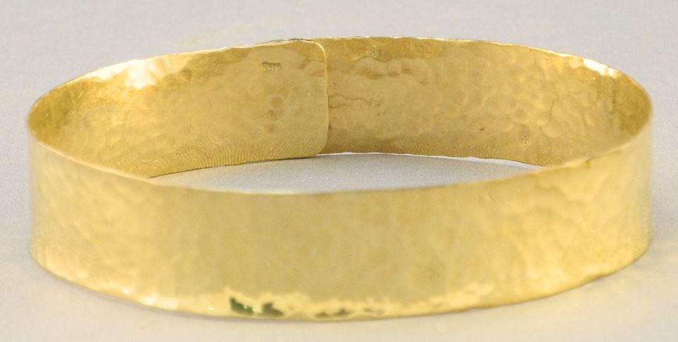 LOT 20 10K Yellow Gold Hammered Bangle Bracelet, 11.98 grams. Estimate: $200 - $250 Sold For: $420 Auction Date: Tuesday, December 07 2021 at 6:00 PM