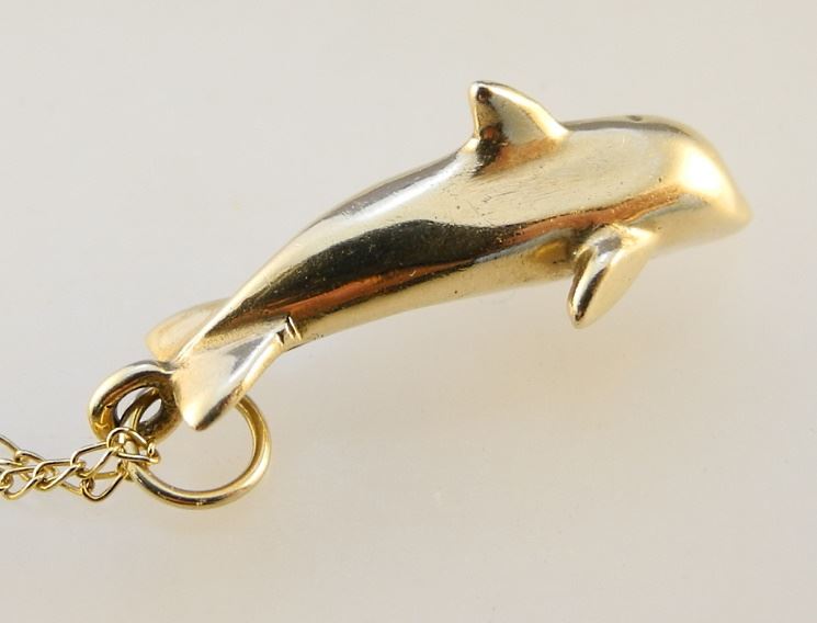 10K Gold Northwest Coast Killer Whale Pendant, 1 1/8", 4 Grams.