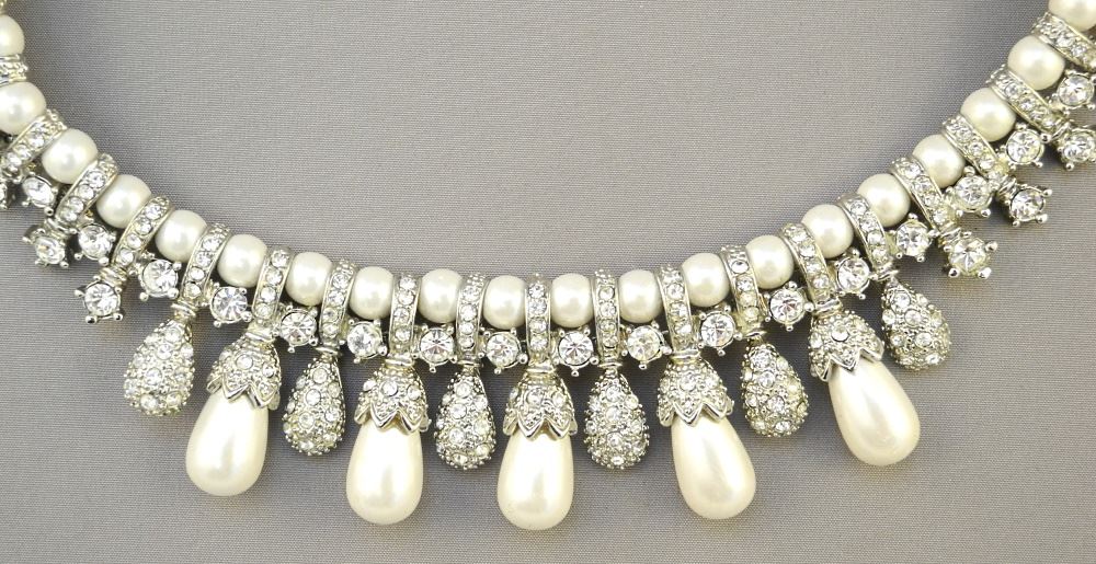 LOT 192 Vintage Rhinestone & Pearl Necklace with Double Clasp. Estimate: $60 - $80 Sold For: $130 Auction Date: Tuesday, March 01 2022 at 6:00 PM