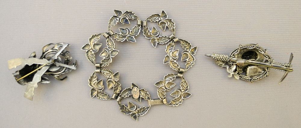 LOT 242 Danecraft Sterling Silver "Acorn" Bracelet (with 1 Earring), 2 Black Forest White Metal Brooche Estimate: $60 - $100 Auction Date: Tuesday, March 01 2022 at 6:00 PM
