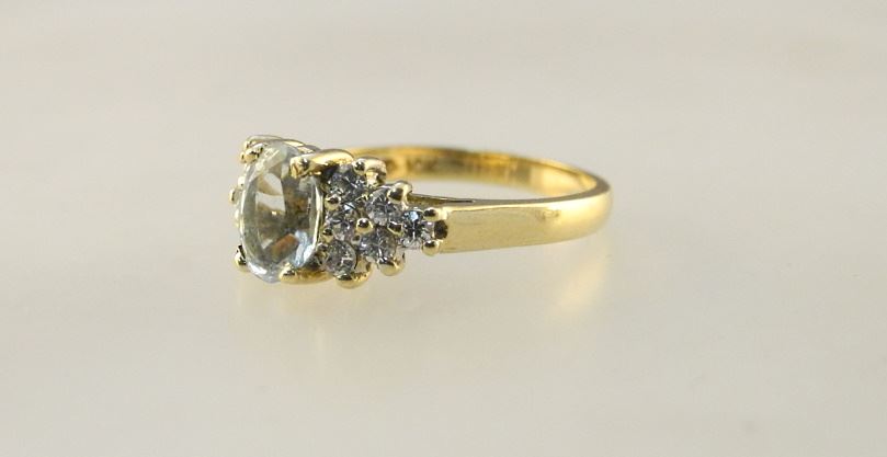 10K Gold Aquamarine & Diamond Ring, TW 2.84 grams, size 5 3/4".