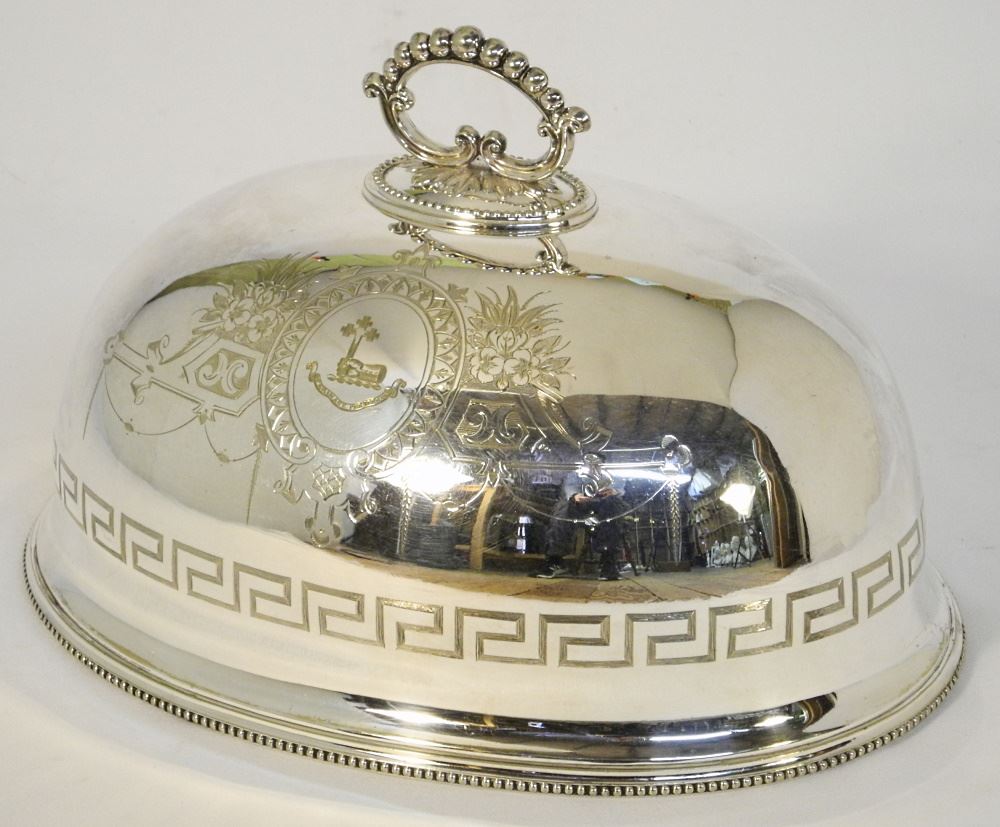 LOT 66 Silver Plated Dish Cloche, 14 1/8" Wide. Estimate: $150 - $200 Sold For: $200 Auction Date: Tuesday, March 01 2022 at 6:00 PM