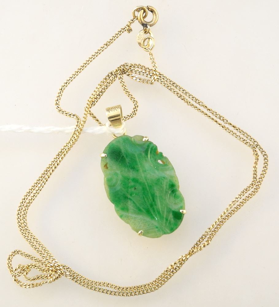14K Jadeite Pendant (1" x 5/8") on a 10K Gold Chain, 18" Length.