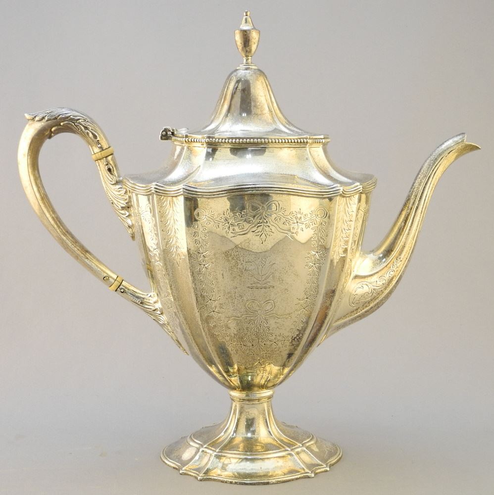 LOT 2 Early Birks Sterling Silver Coffee Pot, 10" Height, 783 Grams, No Export Estimate: $500 - $700 Sold For: $460 Auction Date: Tuesday, July 19 2022 at 6:00 PM