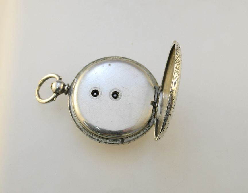 Victorian "Fine Silver" Half Hunter Pocket Watch, 1 1/2" Diameter, TW:45.49 Grams.