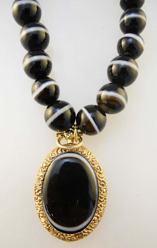 LOT 148 19th Century 9K Banded Agate Necklace & Pendant, 16 1/2" Length. Estimate: $200 - $300 Sold For: $260 Auction Date: Tuesday, July 19 2022 at 6:00 PM