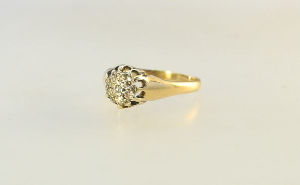 LOT 113 Antique 18K (Marked) Gold & Mine Cut Diamond Ring, Size 7, TW:2.8 Grams. Estimate: $120 - $180 Sold For: $110 Auction Date: Tuesday, July 19 2022 at 6:00 PM