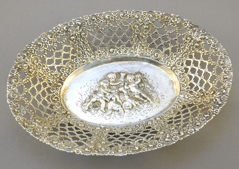 LOT 63 800 Silver Openwork Dish with Cherubs, 7 1/2" Wide. Estimate: $50 - $100 Sold For: $60 Auction Date: Tuesday, July 19 2022 at 6:00 PM