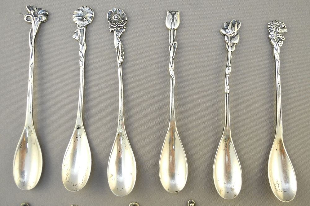 Two 6 Piece Sets of Dutch Silver Spoons: Floral & Apostles, 4 1/4"L, 124 Grams.
