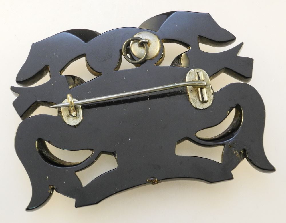LOT 150 Victorian Large Whitby Jet Pendant/ Brooch "Doves", 3" x 2 1/4". Estimate: $100 - $150 Sold For: $90 Auction Date: Tuesday, July 19 2022 at 6:00 PM