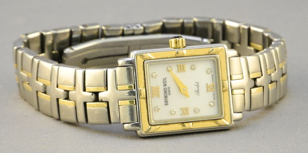 LOT 95 Raymond Weil Parsifal Ladies Wrist- watch, Stainless & 18K. Estimate: $300 - $500 Sold For: $240 Auction Date: Tuesday, July 19 2022 at 6:00 PM