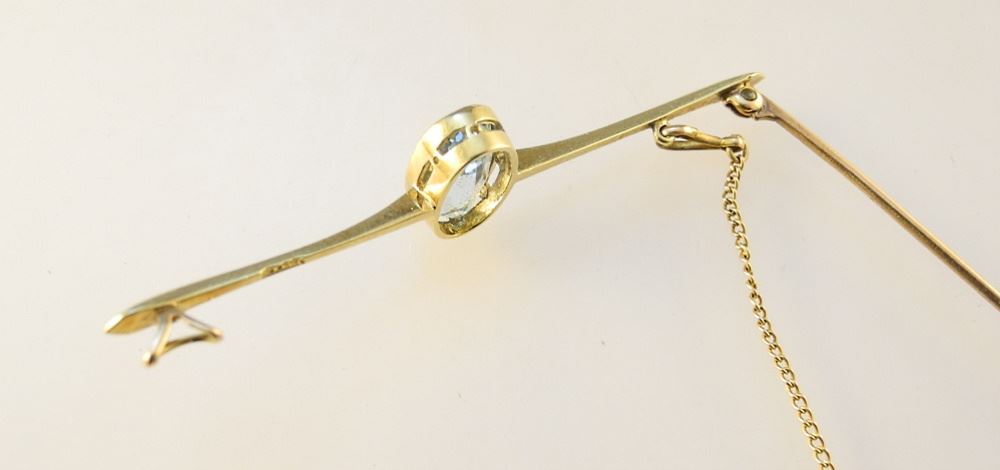 18K Yellow Gold & Aquamarine Brooch.