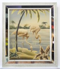Vintage Pink Flamingo Mirror, Signed Turner, 24 3/4" x 20 3/4".